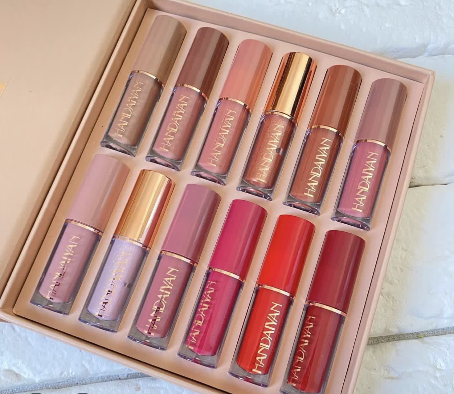 ویژگی های محصول پک رژلب مایع هندیان شامل رنگ های نود و رنگ های جیغ و رنگ های شاین بافت مخملی و مات رنگدهی بالا و یکدست روی لب خیلی سبک هستن اصلا لب رو خشک و پوست پوست نمیکنه اصلا حالت چسبناک ایجاد نمیکنن دارای 12رژلب مایع دارای 10رنگ مات مخملی و 2رنگ شاین هلوگرامی باکیفیت و خوشرنگ, با پکیج شیک و کادویی